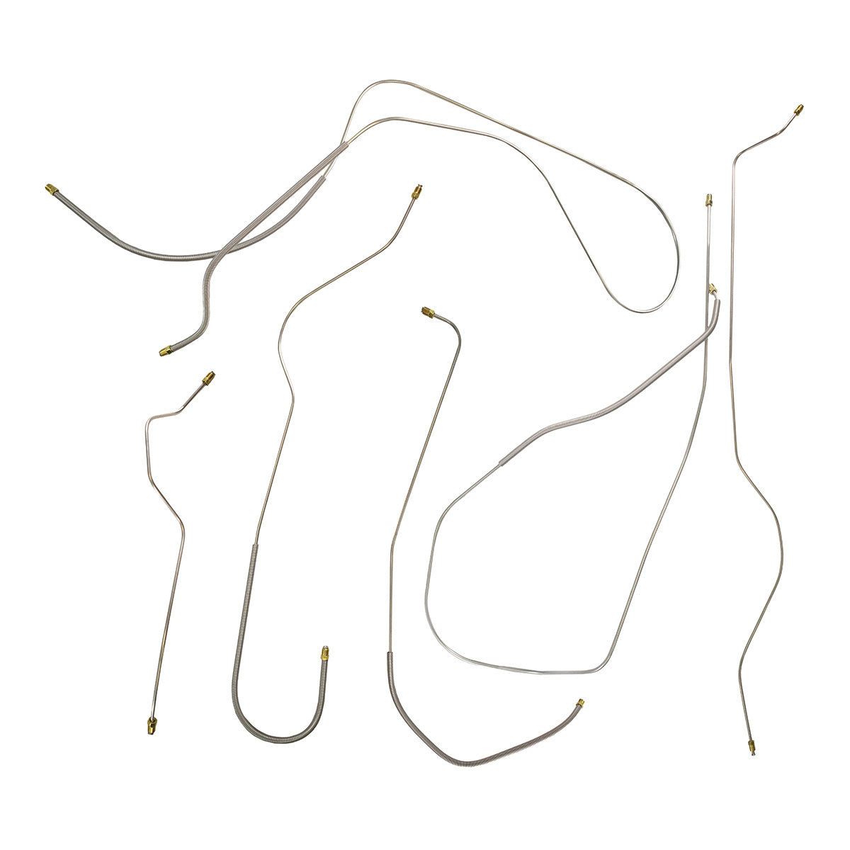 This preformed complete brake line kit will replace all the metal brake lines on your vehicle and includes the master cylinder lines, left front line and right-front crossover line, intermediate lines, and rear axle lines/trailing arm lines.