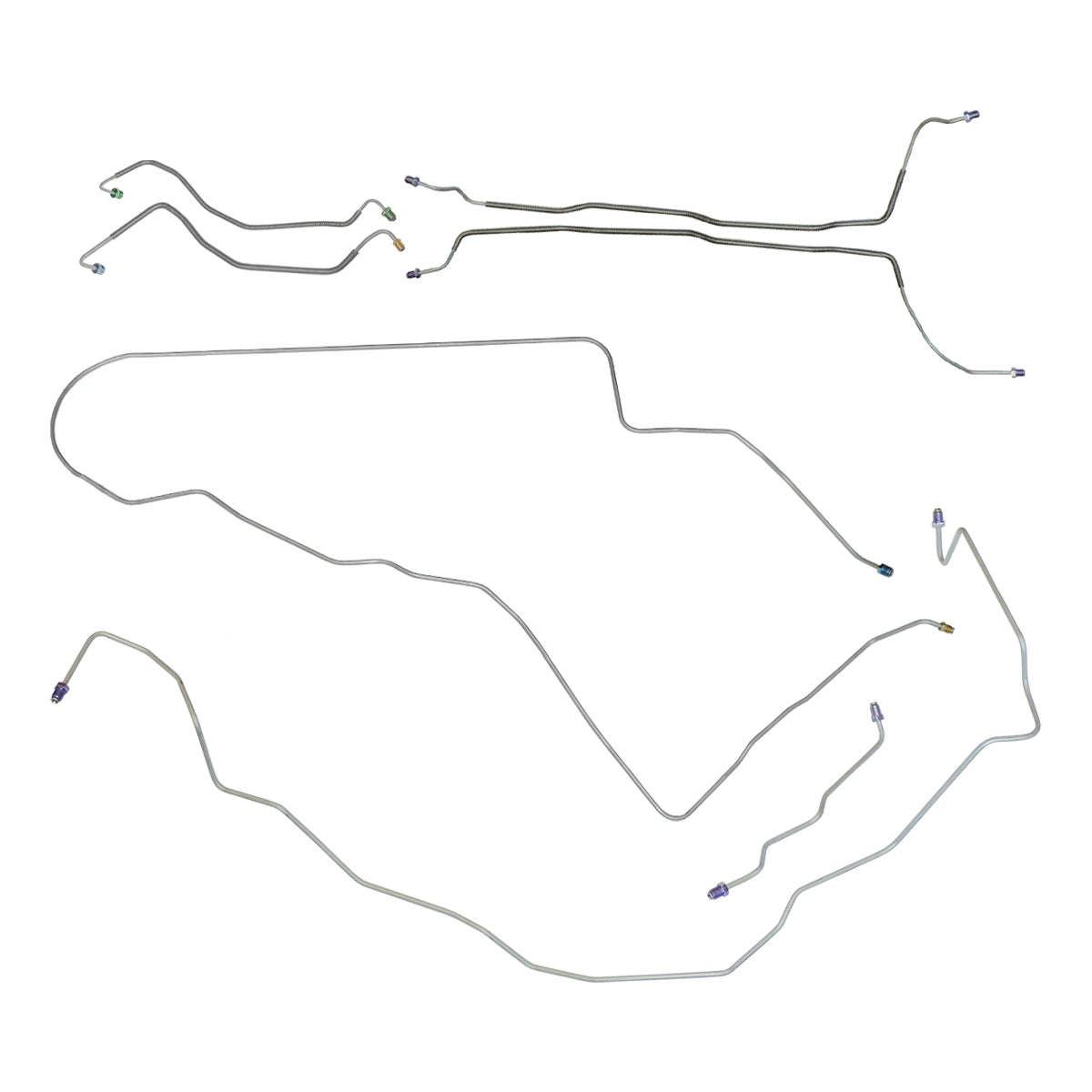 This preformed complete brake line kit will replace all the metal brake lines on your vehicle and includes the master cylinder lines, left front line and right front crossover line, intermediate lines, and rear axle lines/trailing arm lines.