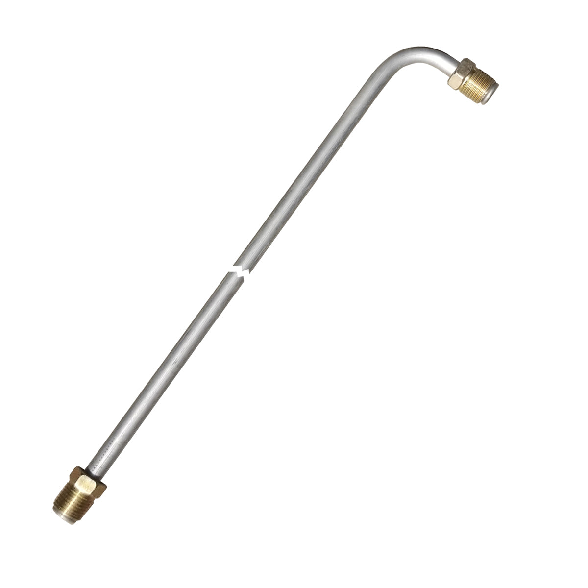 This pre-fabricated tube has a 90-degree bend on one end and is 24” in total length including the 1/4” tube and 7/16”-24 fittings.