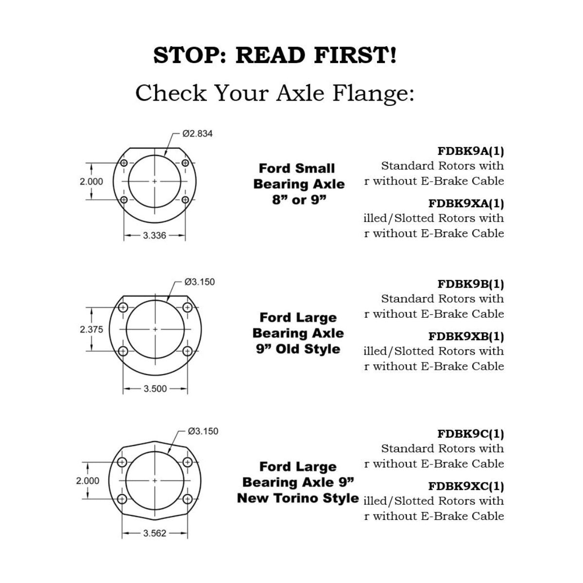 Inline Tubeās Rear Disc Brake Conversion Kits have every brand-new factory-style component to convert your rear axle to disc brakes.Ā FitsĀ Ford small bearing 8ā or 9ā axle. Check secondary photos to ensure that this is correct for your axle.