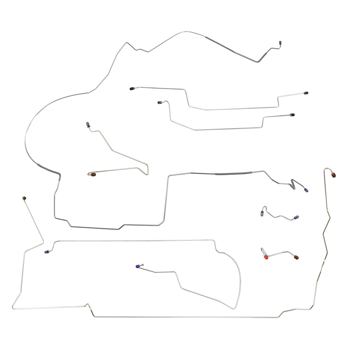 This preformed complete brake line kit will replace all the metal brake lines on your vehicle and includes the master cylinder lines, left front line and right front crossover line, intermediate lines, and rear axle lines/trailing arm lines.
