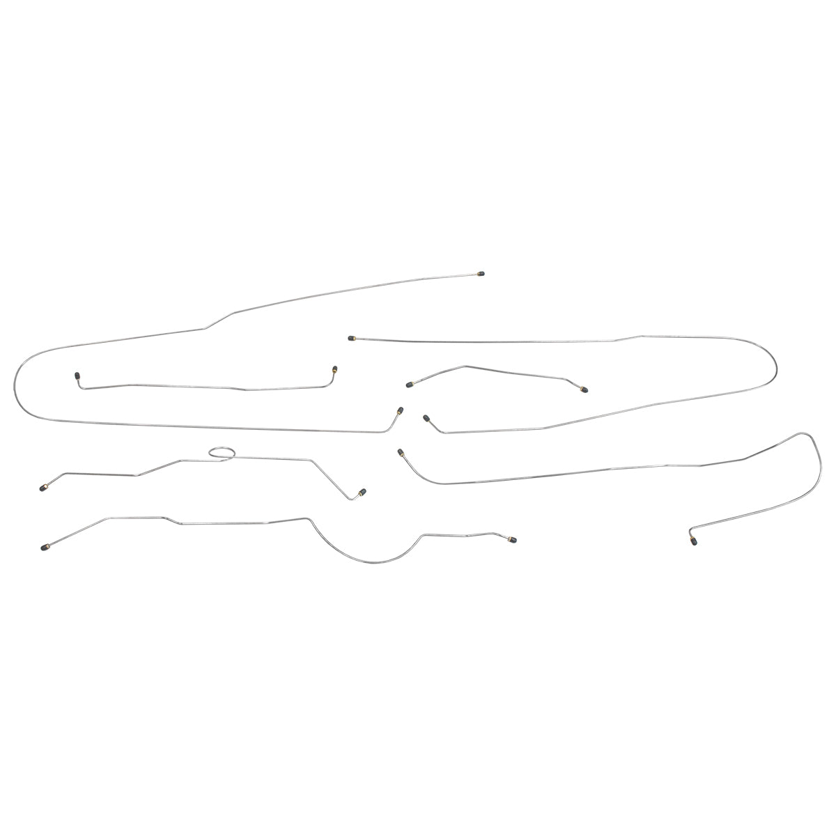 This preformed complete brake line kit will replace all the metal brake lines on your vehicle and includes the master cylinder lines, left front line and right front crossover line, intermediate lines, and rear axle lines/trailing arm lines.