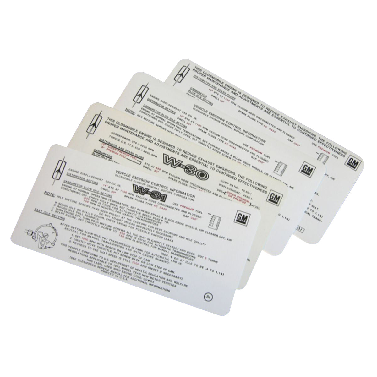 1972 Olds Tune Up Decal 442 W-30 SG 455CID, 4bbl. Manual & Atomatic Trans1pc