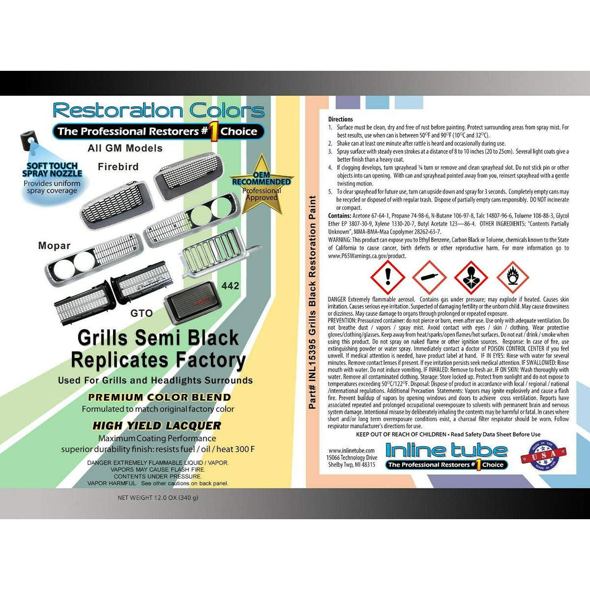 1960-81 GM Ford Mopar Grill and Headlight Surround Semi Gloss Black Spray Paint 1pc