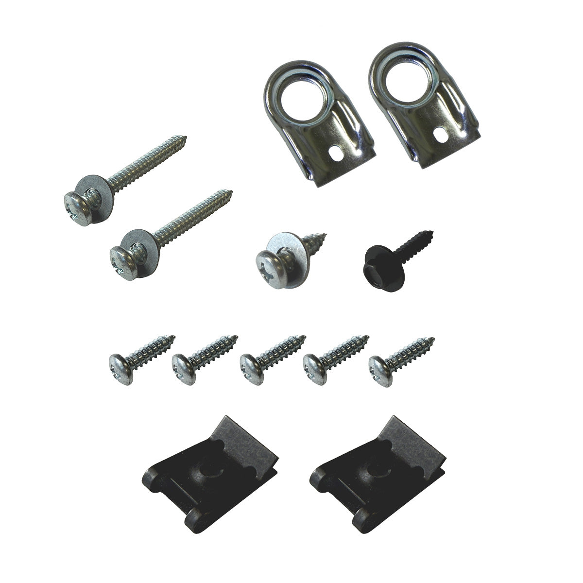This mounting hardware kit secures the under dash duct center vent distribution assembly and includes the bracket for the under dash light assembly. Each component is designed to match original specifications for proper alignment and factory-style restoration.