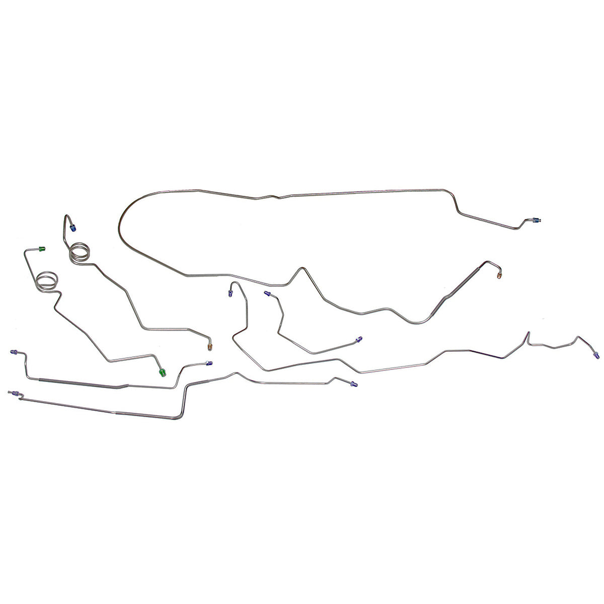 This preformed complete brake line kit will replace all the metal brake lines on your vehicle and includes the master cylinder lines, left front line and right front crossover line, intermediate lines, and rear axle lines/trailing arm lines.