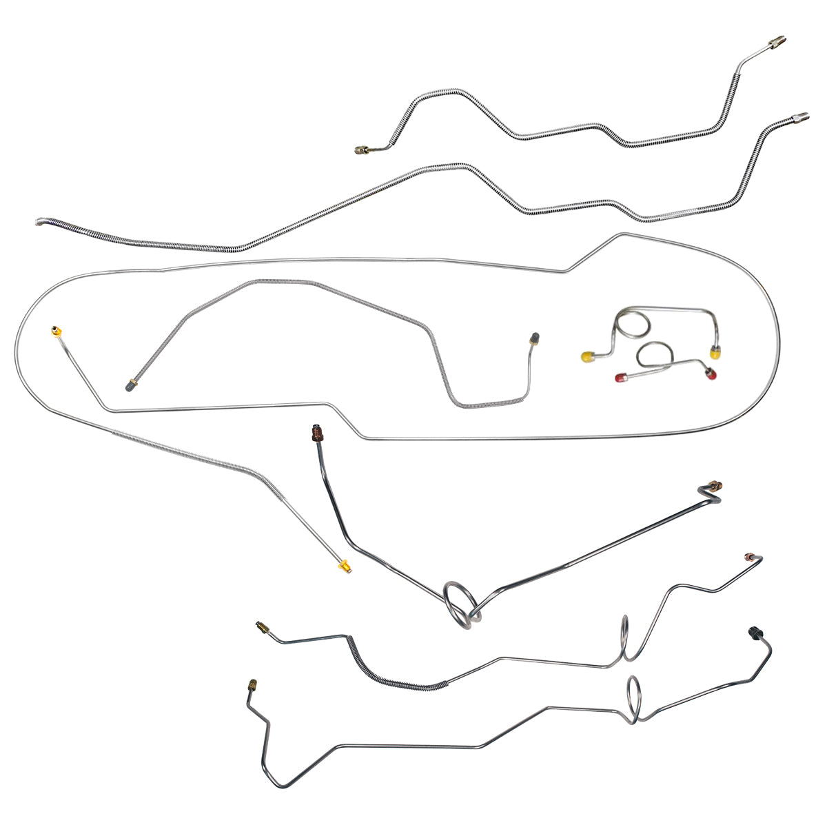 This preformed complete brake line kit will replace all the metal brake lines on your vehicle and includes the master cylinder lines, left front line and right front crossover line, intermediate lines, and rear axle lines/trailing arm lines.
