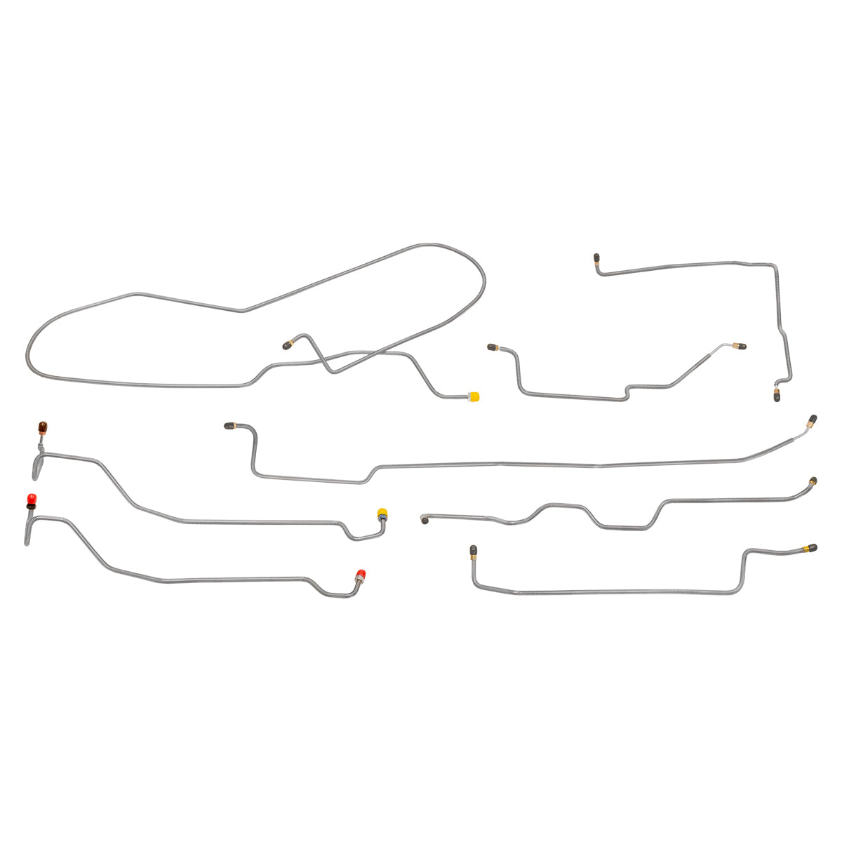 This preformed complete brake line kit will replace all the metal brake lines on your vehicle and includes the master cylinder lines, left front line and right front crossover line, intermediate lines, and rear axle lines/trailing arm lines.