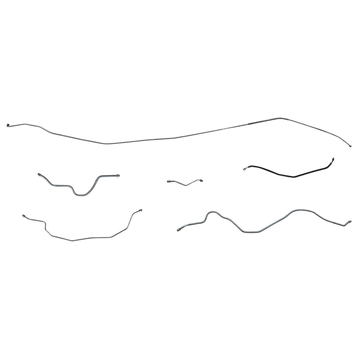 This preformed complete brake line kit will replace all the metal brake lines on your vehicle and includes the master cylinder lines, left front line and right-front crossover line, intermediate lines, and rear axle lines/trailing arm lines.